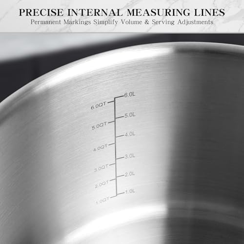 - COOK ANYTHING: This stainless steel pot set works with all stovetops, including induction, gas, electric, and ceramic glass. Molded pour spouts make it easy to pour broth, sauces & more. Built-in draining holes make it easy to drain pasta and strain out large solids.