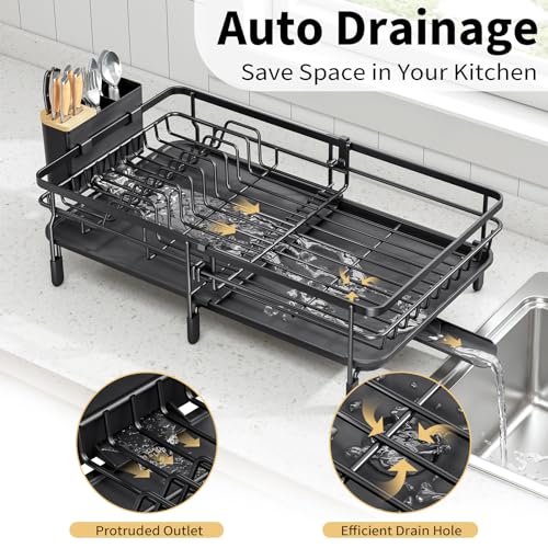 • 【270º ROTATABLE SPOUT EFFICIENT DRAINAGE】: Our dish rack features with a 270° swivel fast draining spout with three different positions, and allows water flowing into the sink from any direction. You won't need to worry about water spilling on your counter and place it on the best side to fit your kitchen and sink environment