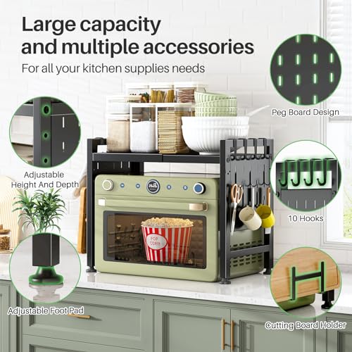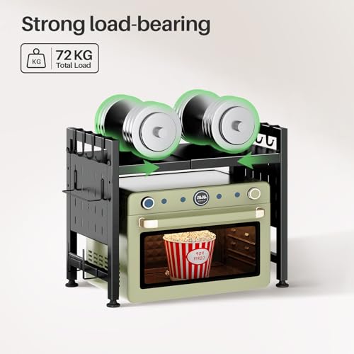 - Maximize Kitchen Space: This Microwave Shelf Stand optimally utilizes countertop space, providing a stylish solution for nizing your kitchen. The Expandable Microwave Rack accommodates microwaves, toasters, coffee machines, and other appliances, helping to reduce clutter and keep your kitchen tidy. Enhance your kitchen's functionality and aesthetics with this versatile storage solution.