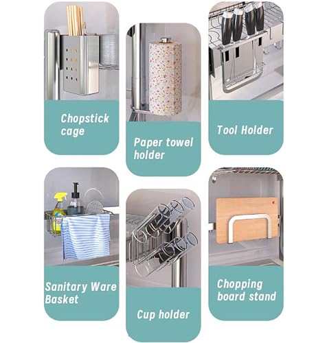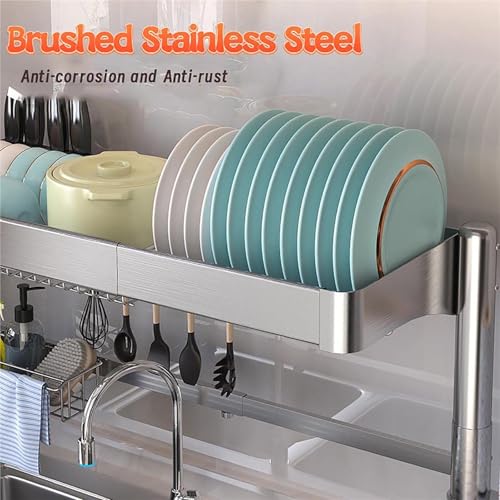 Expandable Stainless Steel Kitchen Sink Dish Rack, Rustproof Space-Saving sil Holder with Cutlery nizer for Countertop, Ideal for Home & Restaurant Use
