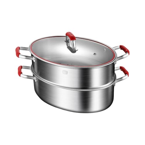 F Fityle Fish Steamer Fish Poacher Multiuse with Cover Easy to Clean Stainless Steel Roasting Pan Food Steamer for Cereals Vegetables, Red Double Layer