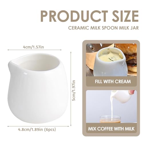 Fahibin 6 pcs 50ml Mini Porcelain Creamer Jug Set, White, For Milk, Coffee, Sauce & Gravy