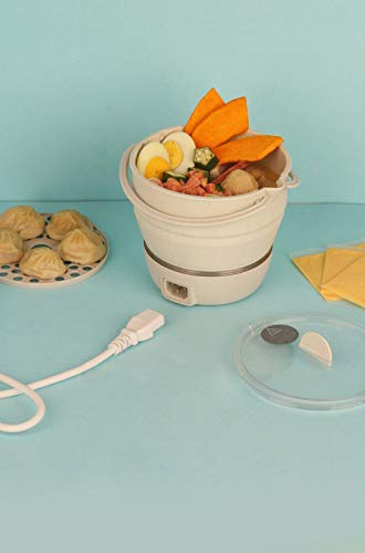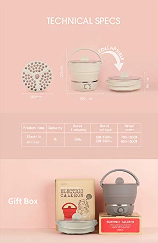 Fayelong 100-240V Folded Food grade Silicone slow cooker portable cooking pot Mini hot pot Travel electric cooker 3 files adjustment (White)