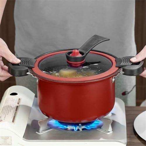 Feeshoppher Pressure Slow Cooker Multifunctional 3.5L Stainless Steel Pressure Cookers Nonstick Slow Cooking Pots Professional Stew Pot with Glass Lid for Kitchen Home Stewing Steaming(Red)