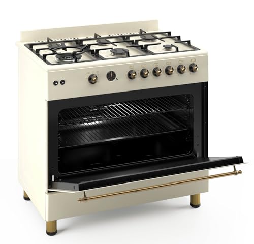 - Ferre F9S60GF-CR-RETRO 90cm Gas Range Cooker With Double Turbo Fan & 6 Burner(1 Wok) Gas Hob – Cream