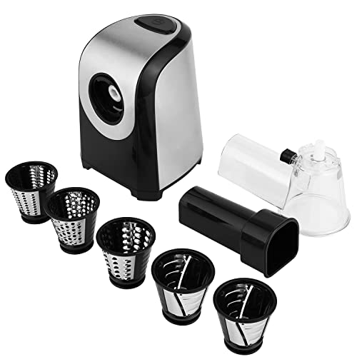 - [Multi-functional Blades]Electric Slicer Shredder Salad Shooter with 5 Interchangeable Stainless Steel Cones, coarse grinding cone, fine grinding cone, thick slicing cone, thin slicing cone and grinding cone, which can meet your different needs.