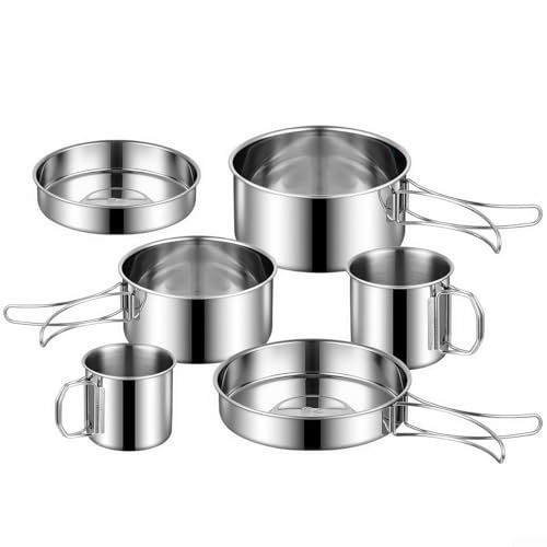 - [COMPLETE CAMPING COOKWARE SET] This 6-piece set includes 3 pots, 1 pan, and 2 cups, providing everything you need for outdoor cooking adventures.
