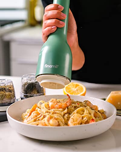 FinaMill Award Winning Battery Operated Pepper Mill & Spice Grinder in One, Adjustable Coarseness, Ceramic Grinding Elements, One Touch Operation with LED Light, Includes 2 Quick-Change PROPlus Pods