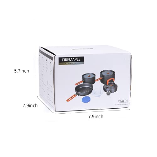 Fire-Maple Feast 4 Camping Cookware Set | Outdoor Cooking kit with Pot Kettle Pan Bowls and Spatula | Kitchen Utensils for 4 People Backpacking Trekking Hiking Fishing Picnic