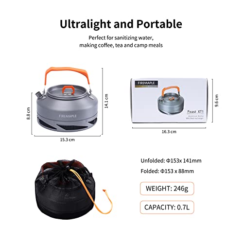 Fire-Maple XT1 Tea Kettle Camping Water Boiler for Coffee | Easy to Clean Hard Anodized Aluminum Cookware Set with Carrying Bag | Outdoor Hiking Picnic Tea Pot and Coffee Pot