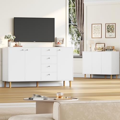 • 【Ample Storage】- Equipped with 4 drawers and 3 doors, this living room sideboard allows you to neatly organize and store various items. Four drawers can hold small accessories, while the three cabinets with doors offer abundant space to store some bigger items.