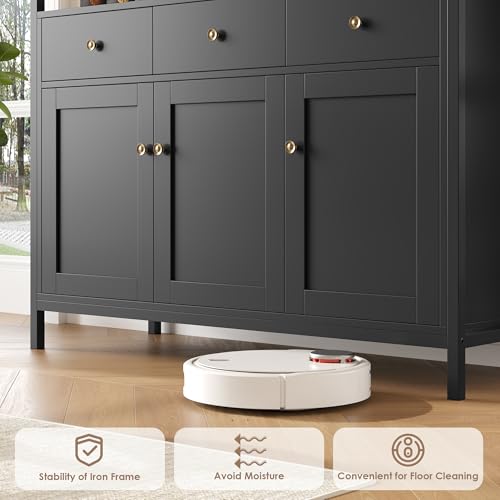 • Durable and Stable: The black sideboard is made of thickened wood, which is sturdy and durable. The handle is made of high-quality metal which is not easy to fade and rust. The specially spray-painted surface is matte and smooth, waterproof and wear-resistant, and the pads at the bottom of the table legs can prevent the cabinet legs from scratching the floor