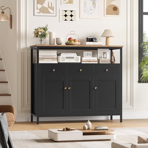 • Unique Design: The 3-in-1 design of open partition, drawers and cabinets with doors meet your different storage and display needs. The internal shelves are adjustable, so you can freely adjust the height of the panels according to the items you want to store. Our sideboard storage cabinet is perfect for placing household items