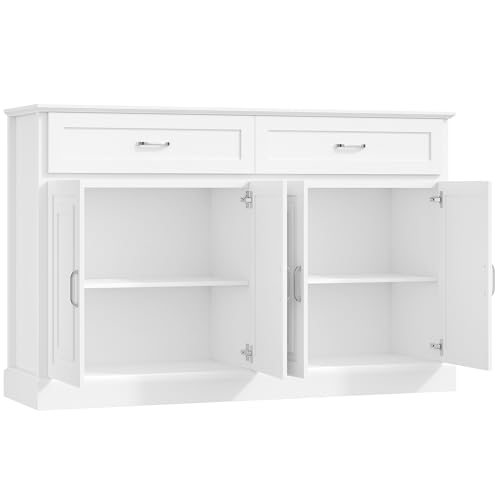 FirFurd Sideboard White Kitchen Sideboard Storage Cabinet Kitchen Buffet Cabinet with 4 Doors 2 Drawers Adjustable Shelves for Living Room Dining Room 140×39.5×92.2cm