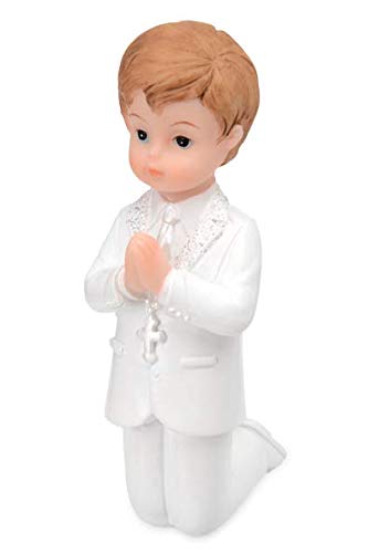 First Holy Communion Edible Gold Bible Kneeling Praying Boy & Ribbon Cake Decoration Topper Ornament