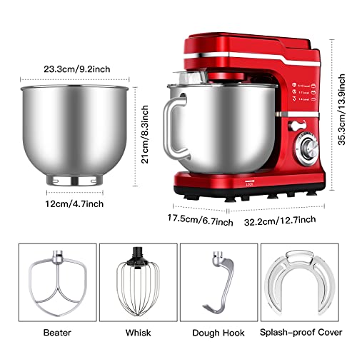 FlexWill Stand Mixer 7.5QT 10 Speeds Tilt-Head Dough Mixer Kitchen Electric Mixer with Dough Hook, Egg Whisk, Flat Beater, Mixing Bowl, Splash Guard 300W Household Food Mixer Red (MC1-RED)