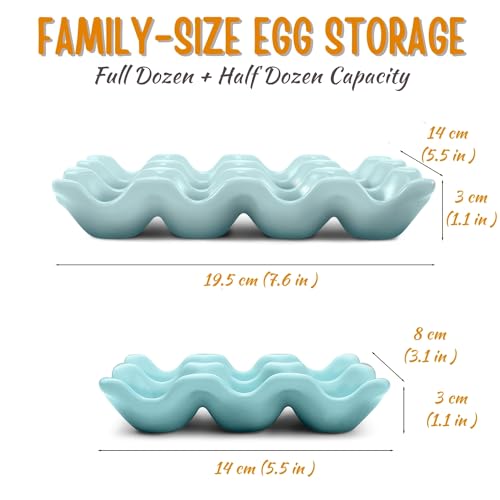 - Easy to Clean Egg Tray- Smooth, impermeable material resists staining so can be easily cleaned with a scouring pad and soapy water. High-fiBlue ceramic material is solid, durable and resists scratches