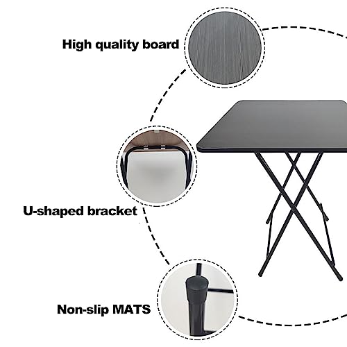 Foldable Dining Table,60 cm Square Small Coffee Table,Portable Folding Desk Heavy Duty Solid Side With Metal Legs,Outdoor Camping Picnic Garden Home Writing Study Office Bedroom Gaming Table(Black)
