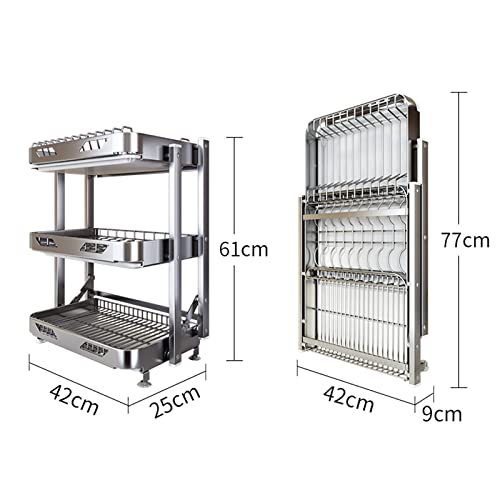 - Stainless Steel Dish Rack with a Foldable Design for Easy Storage. Thisand Rust-Resistant Rack can be Folded in One Second, making it Ideal for Limited Spaces. Available in 2-Tier and 3-Tier Options to Meet Your Needs. Perfect for nizing Kitchenware Efficiently While Keeping Your Countertop Clutter-Free.