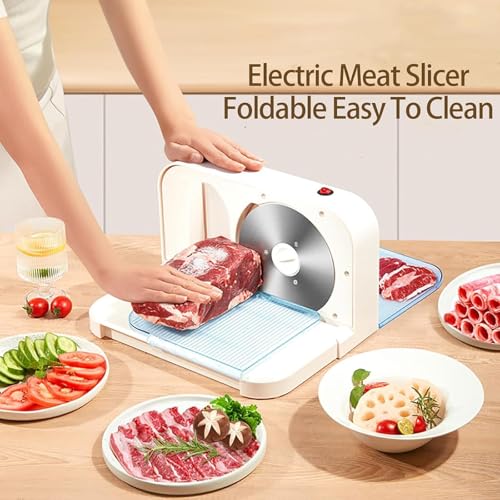 Foldable Electric Meat Slicer Machine for Home, 150w Bread Slicer with Adjustable Thickness 1–15 mm, 16.5cm Stainless Steel Blade, Easy to Clean, for Cheese, Vegetables