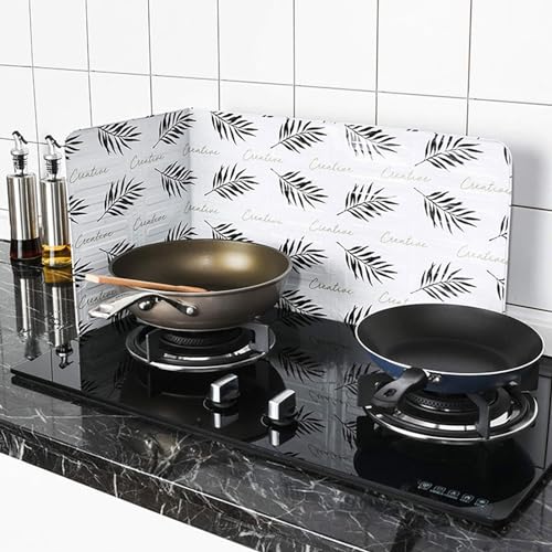 - ⭐️⭐️Our splash guard features a contemporary leaf pattern, adding a touch of colour to your kitchen. It’s the ideal accessory for keeping your cooking space neat and organised.