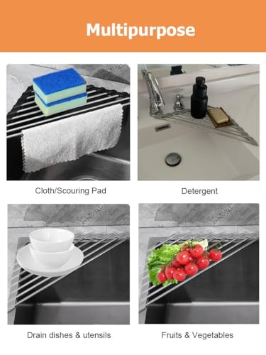 - Multiple Uses: This multi-purpose drying dish rack can be served as a colander to wash vegetables & fruits; It can hold sponges, brushes, hand sanitizer, utens and more; It can be used as insulating mat, which you can place the baked bread, and turkey on the heat-resistant rolling drying dish rack
