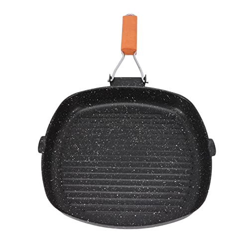 Folding Beech Handle Nonill Pan – Induction Base Stovetop Frying Pan with Divided Griddle for Steak and Grill, Thickened Carbon Steel Design