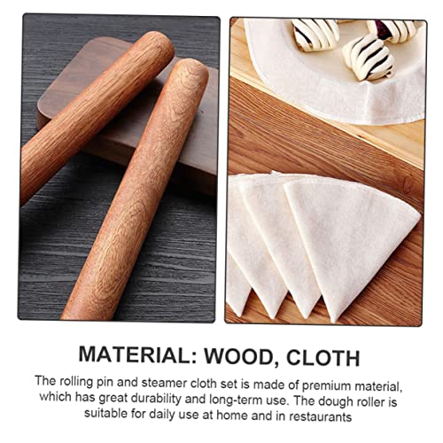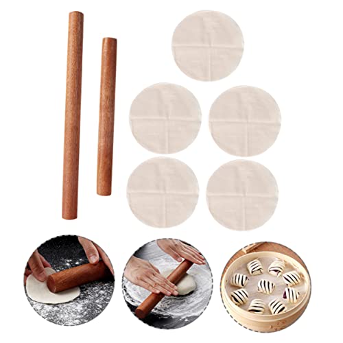 FONDOTIN 1 Set Wooden Dough Roller Set with Rolling Pins and Steamer Liners for Baking Noodles Dumpling Wrappers and Steamed Foods Kitchen Cooking Tools