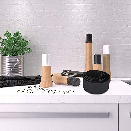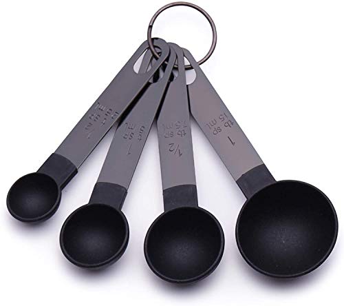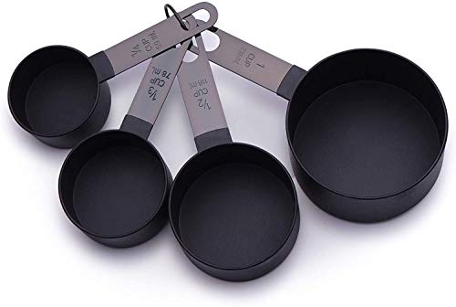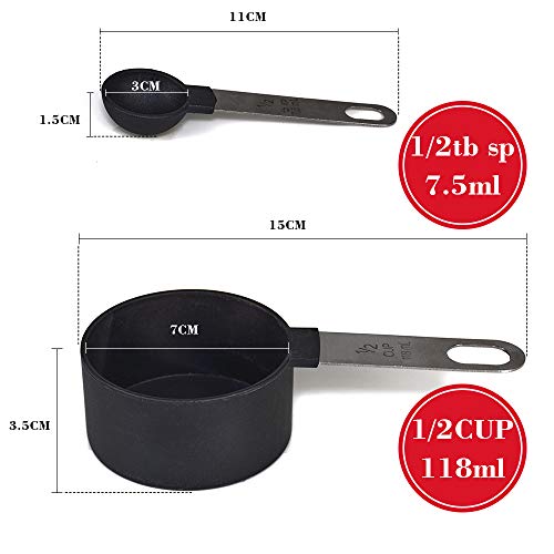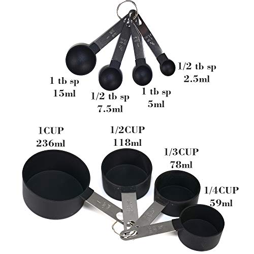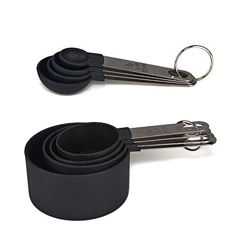 FONYA 8-Piece Black Measuring Tools – Nylon, 4 Measuring Cups / 4 Measuring Spoons with Metal Handles for Liquids and Solids