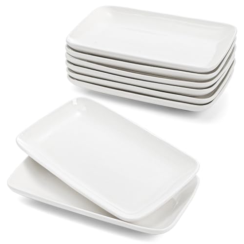 Foraineam Set of 8 Rectangular Porcelain Serving Platters 8 inch/20 cm White Plates Oven Safe Serving Dishes Perfect for Buffets Deserts Appetizers & Entrée