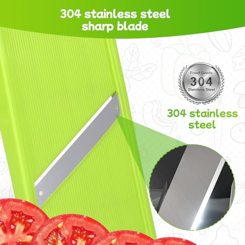 - Rugged Durability: Fashioned from food-grade stainless steel, our Handheld Kitchen Mandoline Vegetable Slicer guarantees long-lasting robustness and resistance to rust. Its vibrant green hue not only adds a lively flair but also infuses your cooking space with freshness.