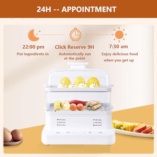 forplubossmmp 800W Electric Stackable Food Steamer | 24H Heat Preservation | Non-Stick Steam Cooker | Steam 22L Large Capacity | Electric Multi-Cookers | Humanized Handle (with 4 Soup Spoon)