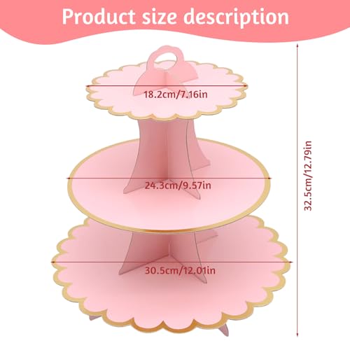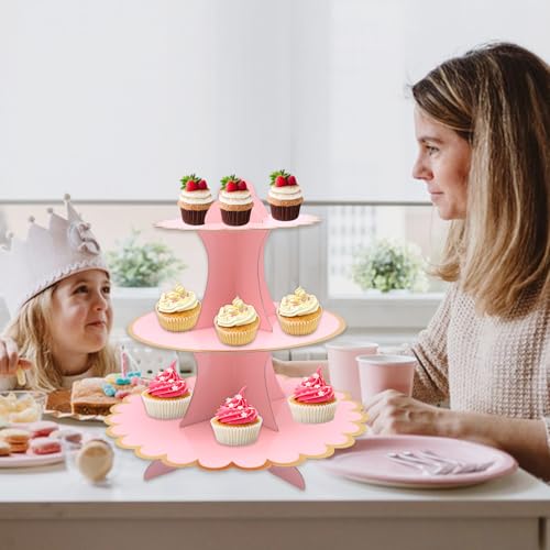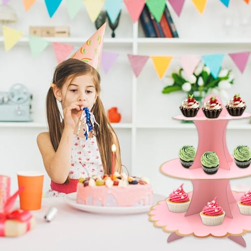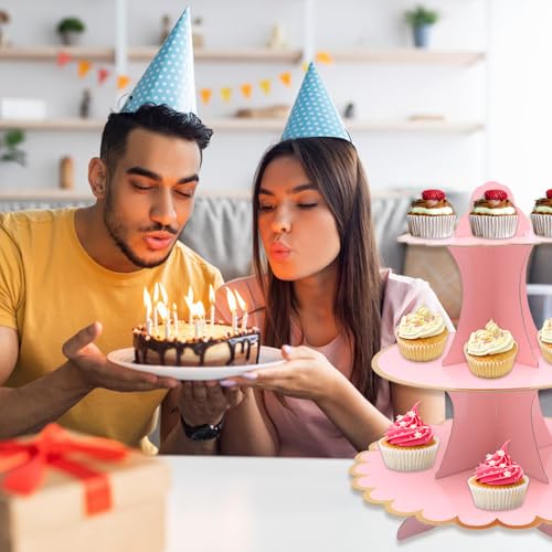 FORYNXHWIN 2 Pack 3-Tier Cardboard Cupcake Stand, Cake Stands for Afternoon Tea, Round Cupcake & Dessert Display Tower for Birthday, Wedding, Mother's Day, Baby Shower (Rose)
