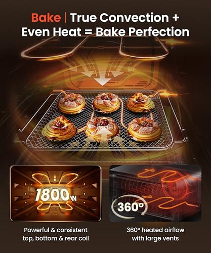 - Dual zone temperature control with 360°convection allows independent heating in upper and lower areas using 1800W tubing. The system circulates hot air evenly, ensuring consistent results from crispy pizza to soft pastries. With precise ±1℉/℃ control, it reduces heat fluctuations and maintains a stable cooking environment, improving accuracy and overall performance.