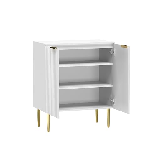 - 【SIMPLE AND STYLISH SIDEBOARD】– Designed with a unique wavy concave pattern, white cabinet, gold metal legs, and door handles, this sideboard combines simplicity and style. It easily matches any room style, adding a sophisticated charm to your home.