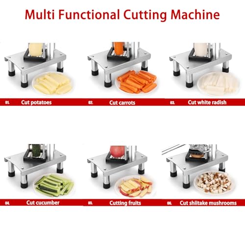 • Versatile Functionality: Our stainless steel manual cutter machine is designed for commercial use, enabling you to effortlessly slice a variety of vegetables and fruits. Perfect for creating perfectly shaped french fries, carrot sticks, cucumber strips, and more – it’s truly a multi-functional vegetable chopper for all your culinary needs