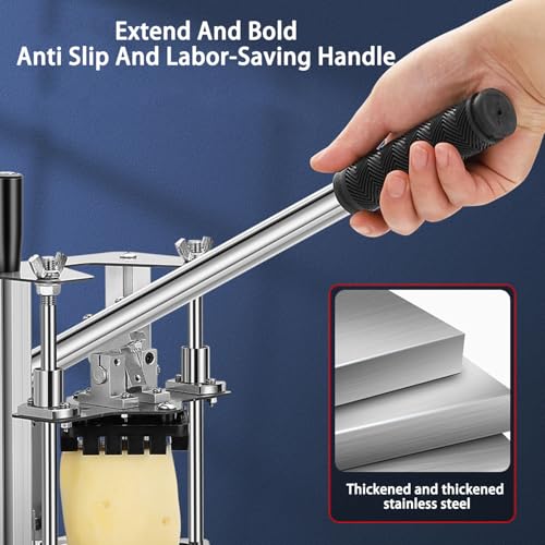 • Durable Stainless Steel Build: Crafted with high-quality stainless steel, both the body and the blades are designed for maximum durability and longevity. The 420 carbon steel knife head guarantees sharpness and precision, ensuring that your french fries cutter for potatoes always delivers consistent results