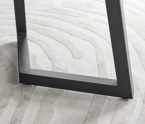 - STRIKING DINING TABLE: The Carson 6 Seat Rectangular Dining Table table has a white marble effect tabletop and striking statement U shaped legs that feature an angular indent, in black powder-coated metal. Perfect for family dinners and entertaining guests.