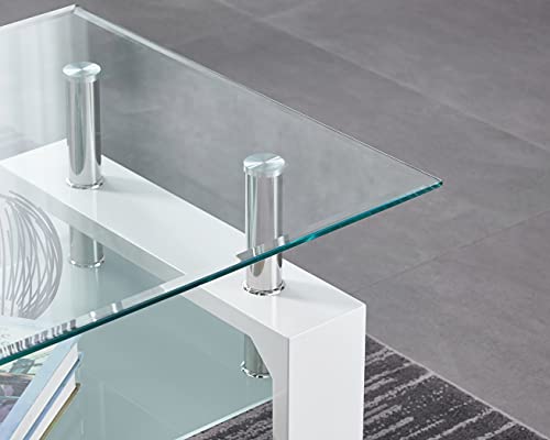 Furnizone COSMO Clear Glass Top with Frosted Glass Shelf & White High Gloss Legs Modern Coffee Table Home Living Room