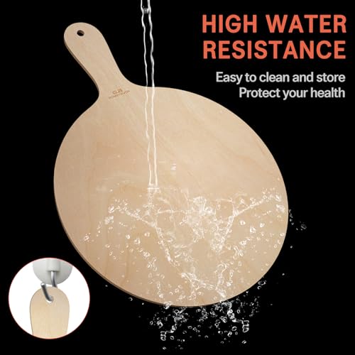 - NATURAL BIRCH PLYWOOD – Made of natural birch plywood, smooth surface, curved edge, natural wood grain, easy grip handle design make the round pizza board simple and elegant.