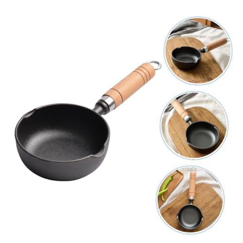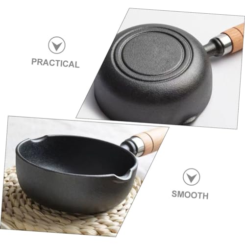Garneck Cast Iron Melting Pot Small Saucepan with Wooden Handle Butter Warmer Pan for Heating Milk Oil Candy and Cheese Mini Cooking Pot for Frying Eggs Stir Frying and Boiling Soup