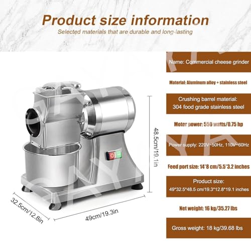 GAYAYAS Commercial Electric Cheese Grating Machine, Restaurant Italian Stainless Steel Cheese Grater, for Supermarkets, Delis, and Grocery Stores