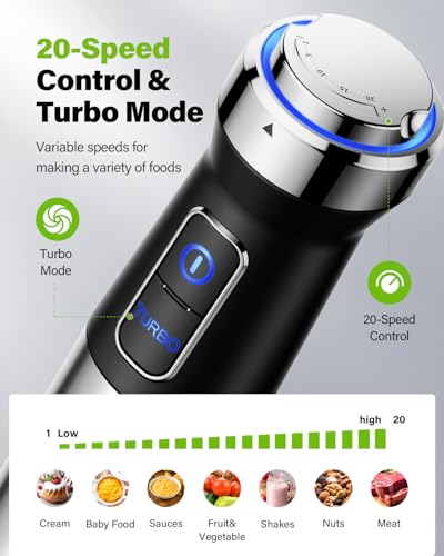 - 20-Speed Control & Turbo Mode – 20-speed precision dial, adapt mixing power to any ingredient or preference. Press and hold the Turbo button for additional power boost