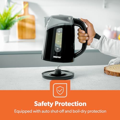 - KETTLE FEATURES: Cordless design with water level indicator and safety shut-off