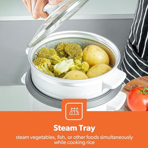 - GLASS LID, 2 YEAR WARRANTY- This rice cooker has a sturdy glass lid with stainless-steel rim that fixes it into place. It does not get smoky and lets you watch your rice as they are being cooked. Its compact design also makes it easy to store away or fit on any counter-top, making it ideal for smaller kitchens.