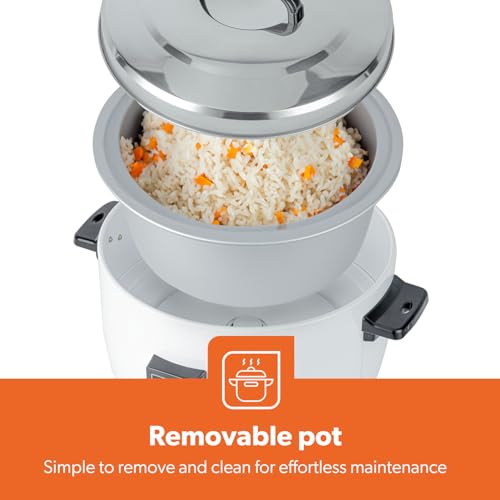 - âś… LARGE 4.2L CAPACITY, ACCESSORIES: This commercial rice cooker is designed to handle the demands of busy kitchens and catering services. With its generous 4.2-liter capacity, it can cook up to 23 cups of perfectly fluffy rice in one go, making it ideal for restaurants, cafeterias, takeaways, caterers and large gatherings. It also comes with a measuring cup to ensure you always get your portions right & a spatula for serving.
