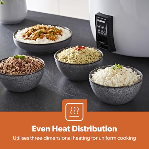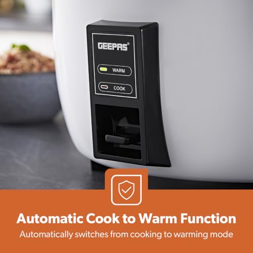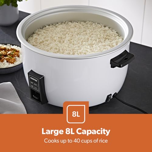 - Geepas Commercial Rice Cooker 8L, 2500W | Non-Stick Aluminium Removable Inner Pot | Automatic Switch from Cook to Warm | Stainless Steel Lid with Measuring Cup & Spatula White (Renewed)
