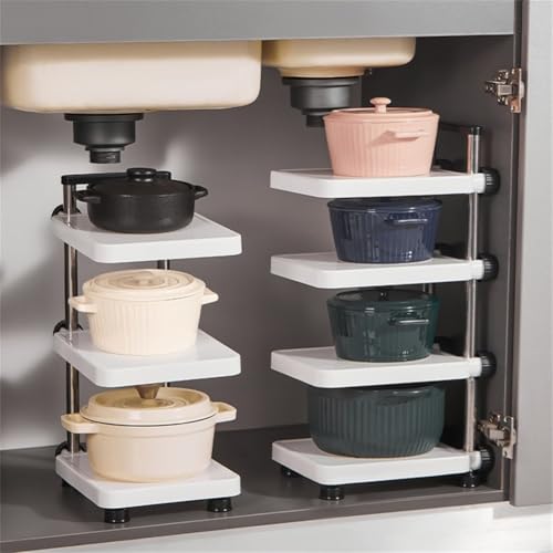 Gettimore Adjustable 2-4 Tier Pot Storage Rack for Kitchen Cabinet, Pan Organizer Holder, Stainless Steel & PP, 33-52cm Width