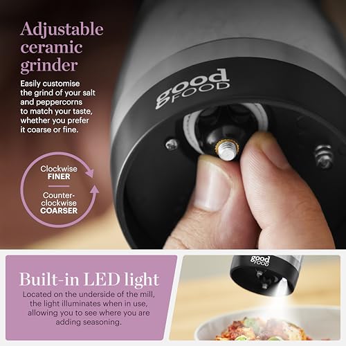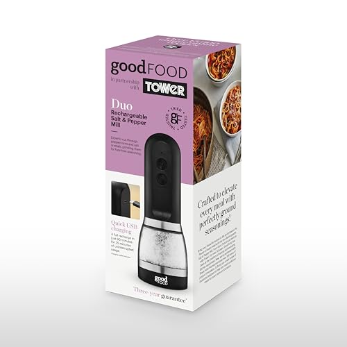 - GOOD FOOD TRIED & TESTED: Bring your favourites recipes to life and enhance the flavour of every meal with this Duo Salt & Pepper Mill. All products from Good Food in partnership with Tower have been Tried & Tested by our expert Recipe Development Team to ensure they work perfectly with our vast online library of over 15,000 unique recipes