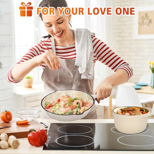 - 🔥 【Effortless Cleaning & Maintenance】 The smooth enamel coating prevents food from sticking, making cleanup quick and easy. While this set is dishwasher safe, hand washing with warm soapy water and a soft brush will help maintain its pristine condition for years to come. Experience hassle-free cooking and superior durability with this premium cast iron cookware set!